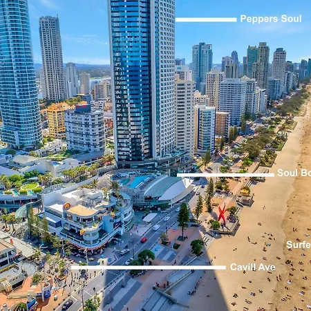 Das 2-Zimmer-Soul Beachfront 3Brm Ocean View - Optimise Bnb liegt im Bezirk Surfers' Paradise und bietet seinen Gästen private Parkplätze und WLAN. Der Flughafen Gold Coast befindet sich 30 Fahrminuten entfernt, und die Bushaltestelle Ferny Avenue at Palm Avenue liegt etwa 10 Minuten zu Fuß von diesem Apartment entfernt.